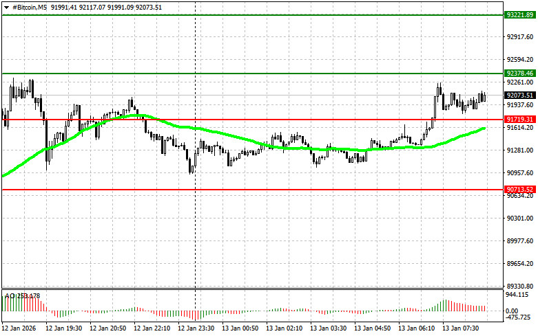 Сценарий №2: покупать биткоин можно от нижней границы $91 800 при отсутствии рыночной реакции на ее пробой в обратную сторону к уровням $92 300 и $93 200.