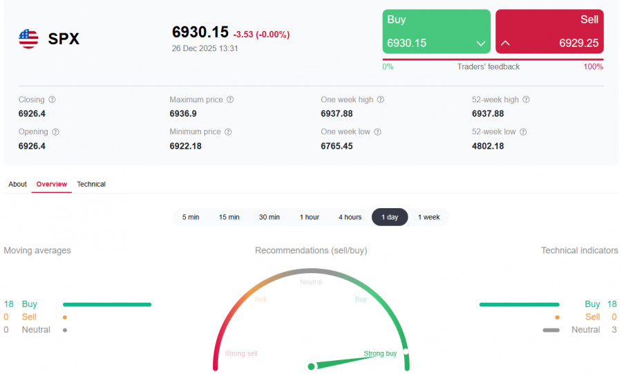 *) см. также: Торговые индикаторы InstaForex по S&P500 (SPX) Итоги 2025 года В 2025 году рынок демонстрировал сочетание сильных технологических и AI?секторов, чувствительности к монетарной политике и периодических всплесков волатильности на фоне макроновостей и геополитики. Ключевые драйверы 2025: ожидания по циклу ФРС (темп и график снижения ставок), корпоративные прибыли (особенно в технологиях и полупроводниках), капитальные затраты в области ИИ/облачных вычислений и вопросы глобальной торговли/геополитики.Индекс S&P500 завершает 2025 год вблизи отметки 6930.00 (на 26.12.2025), продемонстрировав значительный рост почти