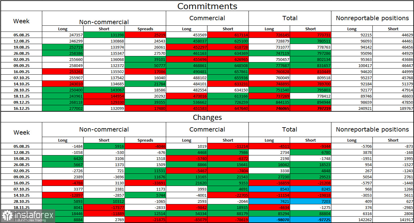 Тридцать три недели подряд крупные игроки избавлялись от Short-позиций и наращивали Long. Затем начался «шатдаун», а сейчас мы видим ту же самую картину: быки продолжают наращивать Long-позиции. Политика Дональда Трампа остается наиболее весомым фактором для трейдеров, так как вызывает множество проблем, которые будут иметь долгосрочный и структурный характер для Америки. Например, ухудшение состояния рынка труда. Трейдеры опасаются потери независимости ФРС в 2026 году под давлением Трампа и на фоне ухода в отставку Джерома Пауэлла в мае.