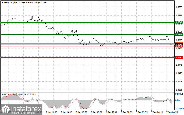 Сценарий №2: покупать фунт сегодня также планирую в случае двух подряд тестов цены 1.3490 в момент, когда индикатор MACD будет находиться в области перепроданности. Это ограничит нисходящий потенциал пары и приведет к обратному развороту рынка вверх. Можно ожидать рост к противоположным уровням 1.3518 и 1.3548.