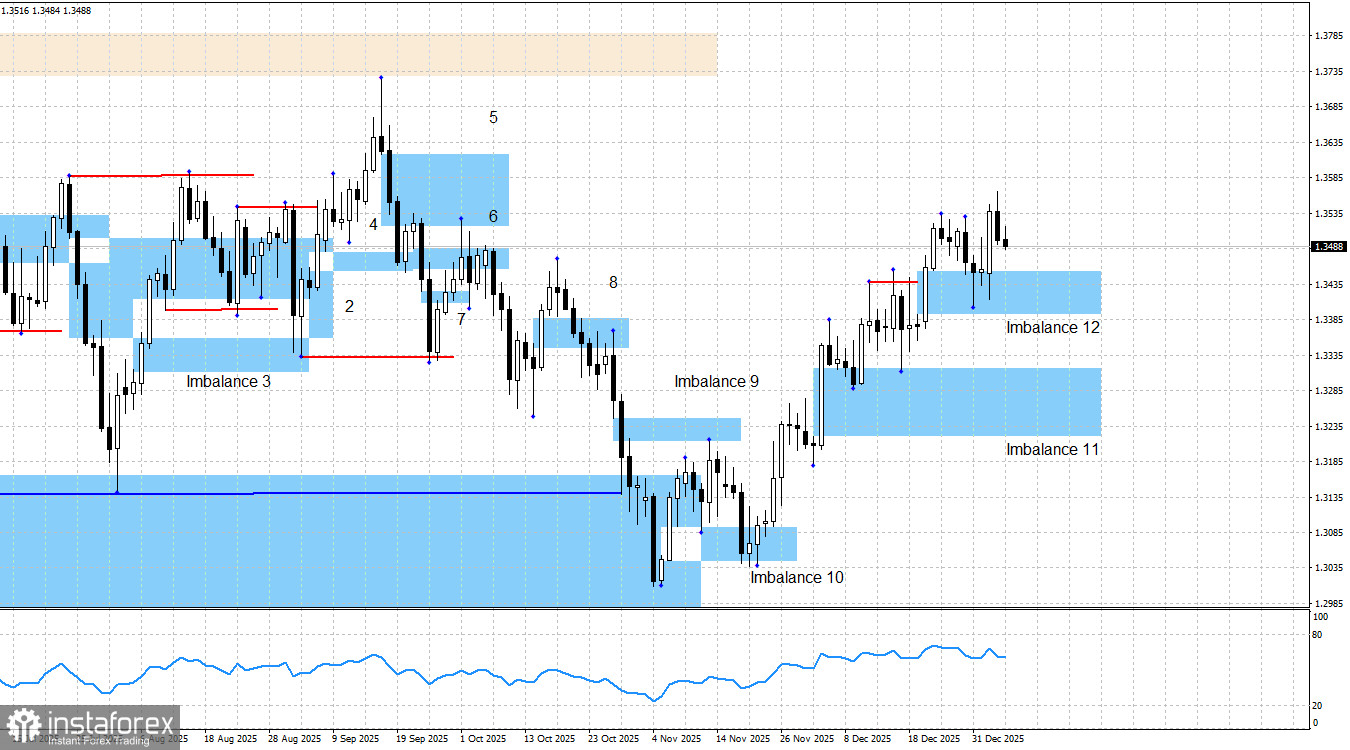 Графическая картина сейчас следующая. «Бычий» тренд по британцу может считаться завершенным, но «бычий» тренд по европейцу – нет. Таким образом, европейская валюта может тянуть за собой вверх фунт столько, сколько потребуется. Или наоборот. Быки оттолкнулись от «бычьего» имбаланса 1, от «бычьего» имбаланса 10, от «бычьего» имбаланса 11 дважды, а теперь еще и от имбаланса 12, который тоже является «бычьим». Таким образом, я по-прежнему ожидаю рост к пикам 2025 года – около уровня 1,3765.