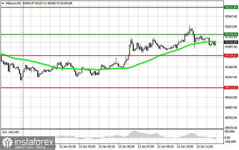 Сценарий №2: покупать биткоин можно от нижней границы $91 800 при отсутствии рыночной реакции на ее пробой в обратную сторону к уровням $92 300 и $93 200.