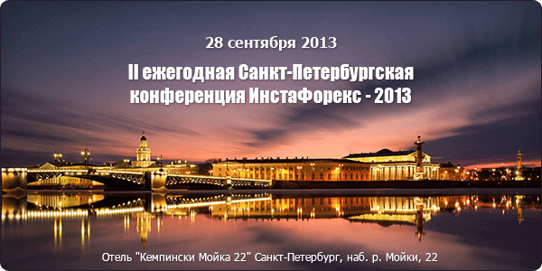 6 октября 2012 года в Санкт-Петербурге компания ИнстаФорекс впервые провела международную конференцию для своих клиентов и всех интересующихся Форекс-трейдингом. На мероприятии обсуждались актуальные вопросы работы на валютном рынке и использование современных технологий в торговле. Гости конференции смогли не только послушать доклады ведущих специалистов в области валютного трейдинга, но и обсудили с коллегами различные аспекты торговли на рынке Форекс, а также поучаствовали в розыгрыше ценных призов.