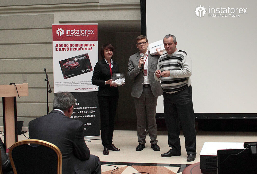 По традиции компания разыграла среди посетителей, число которых превысило отметку в 100 человек, несколько мобильных девайсов, таких как, смартфон Samsung Galaxy S4, планшетный компьютер iPad4. Также были разыграны 6 торговых счетов в управление, каждый на сумму 500 USD. Каждый гость, не являющийся клиентом компании, во время проведения конференции имел возможность открыть бонусный счет в компании ИнстаФорекс со стартовым депозитов в 50 USD.
